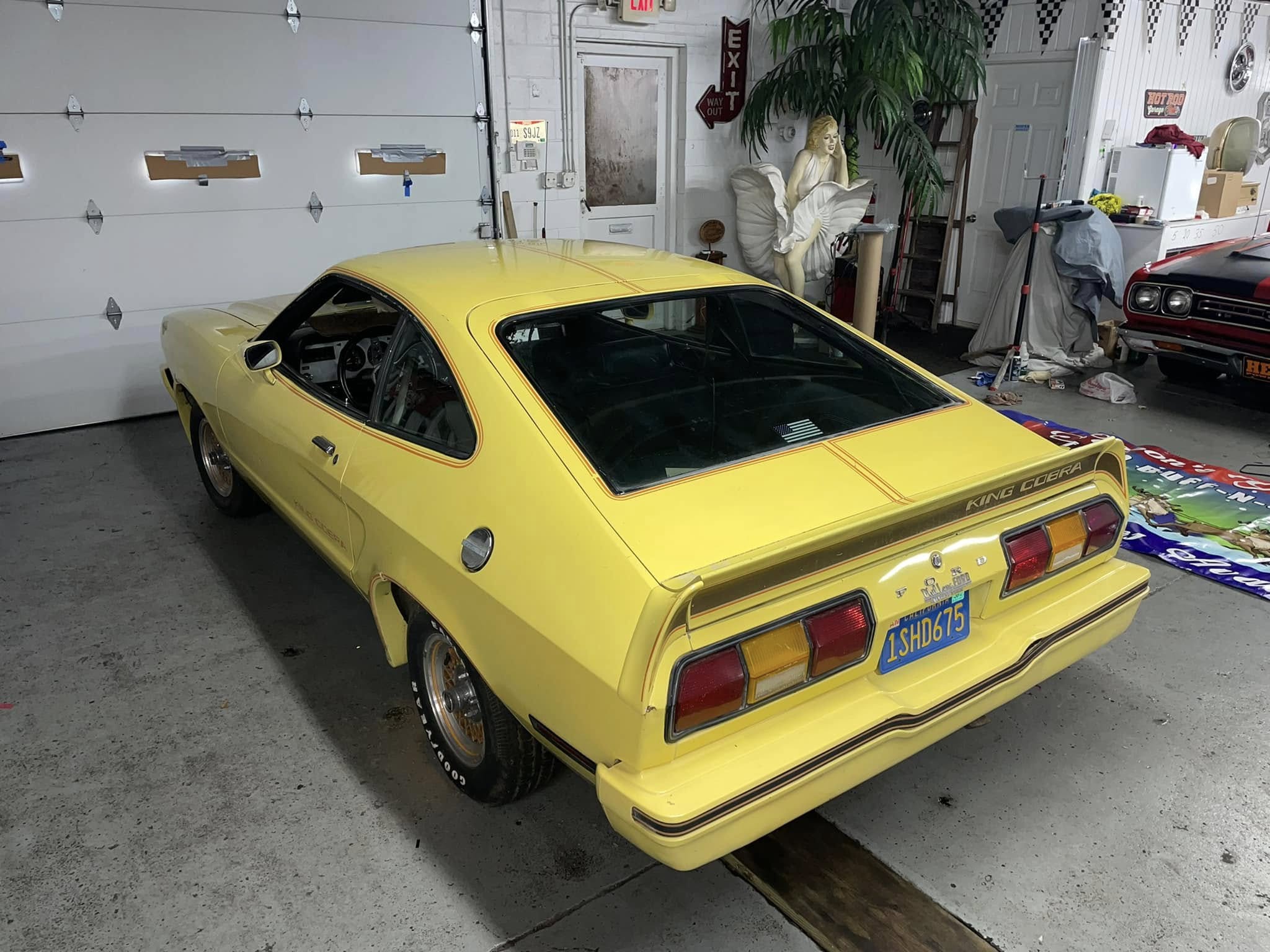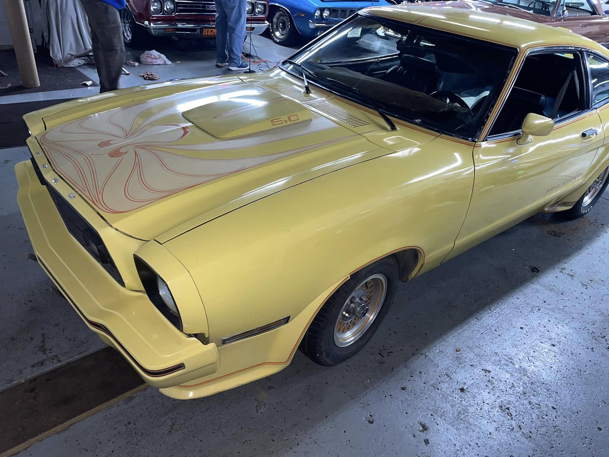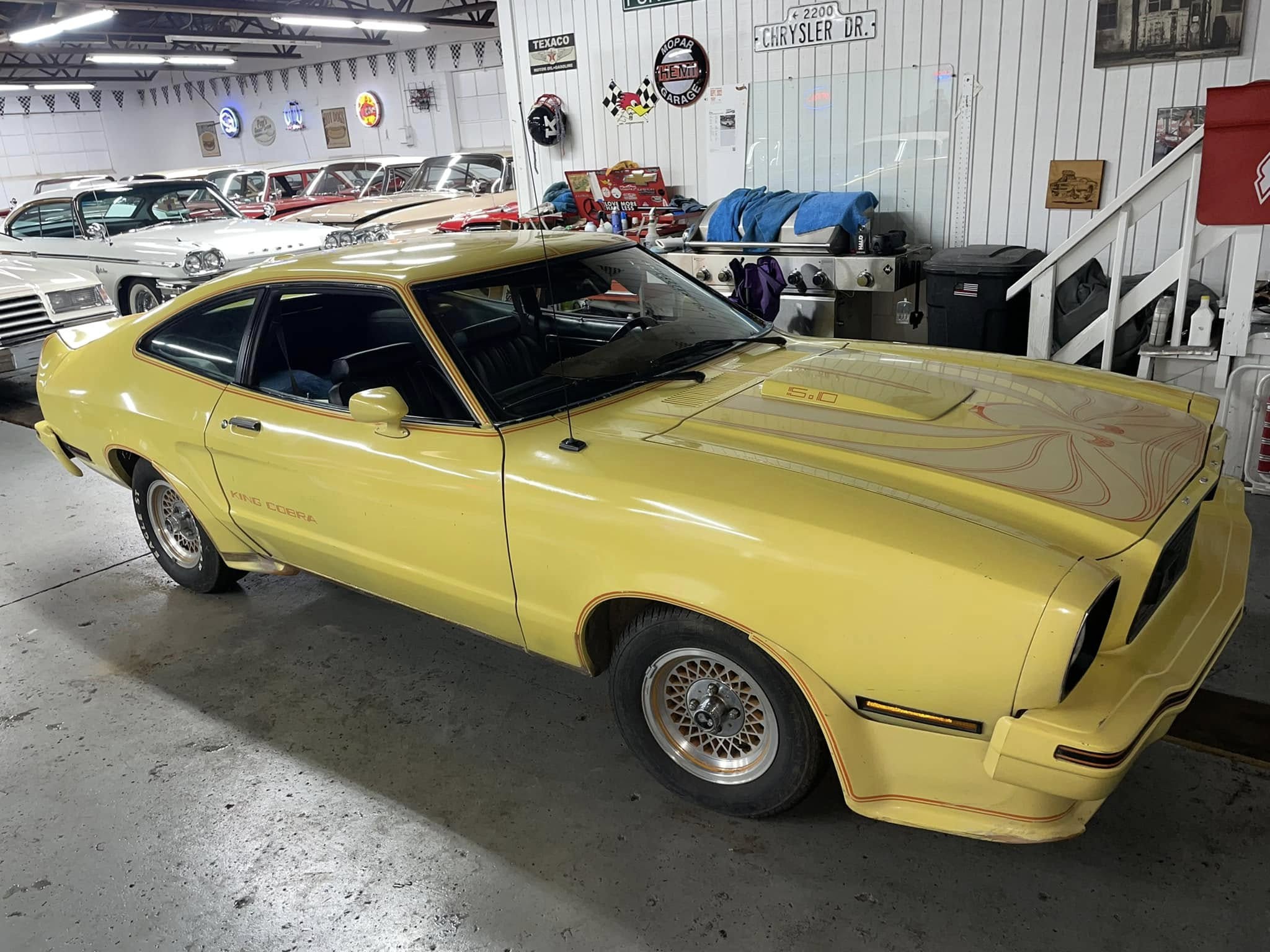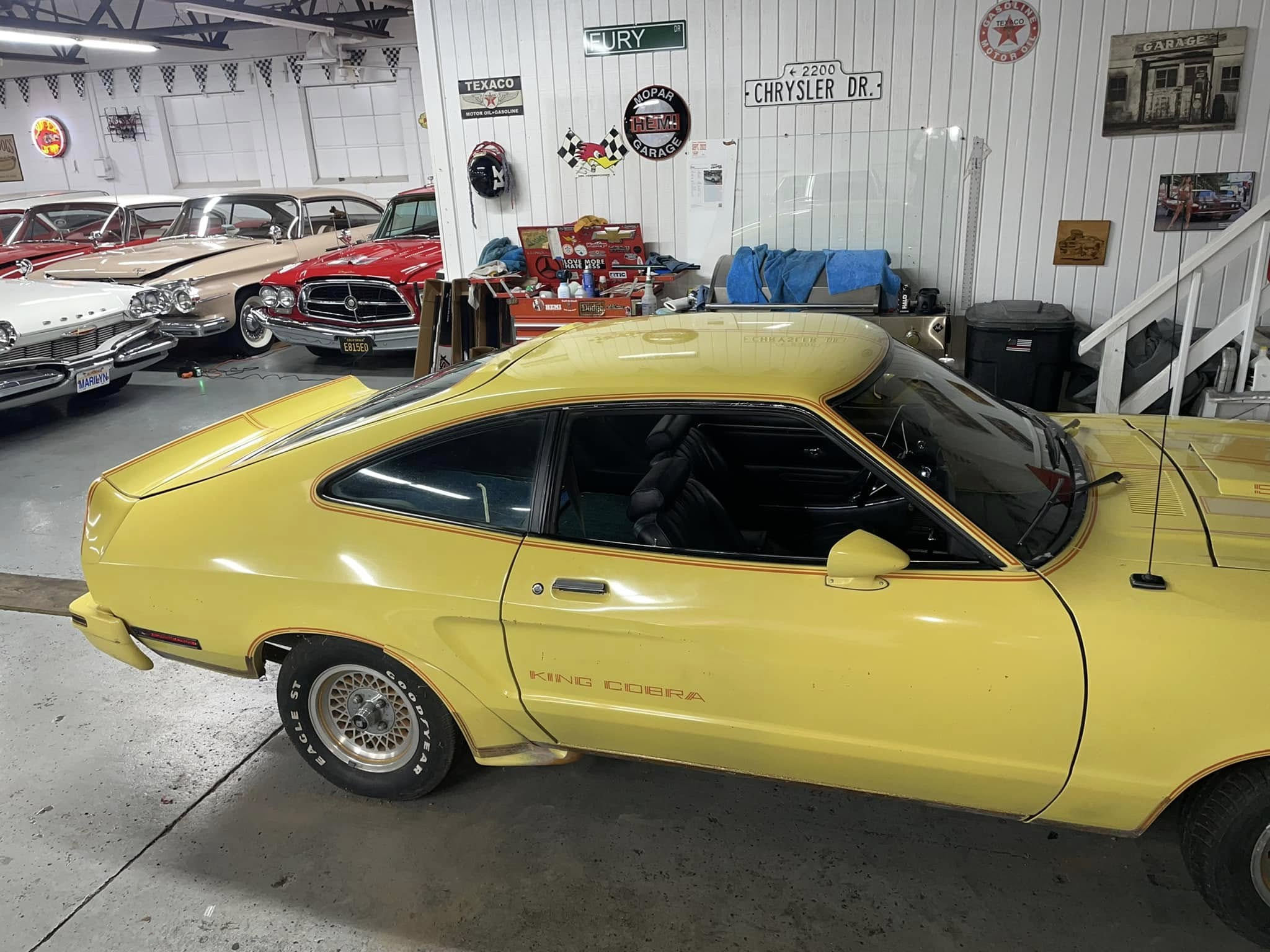 This bright yellow King Cobra is one of kind. I am not sure the details on if this is factory color and decals or if the motor has been modified but the owner let me put the photos up here and I am happy about that because fans of the Mustang II, this is one to see. The owner did a great job with the color and right down to the details. The body looks perfect.